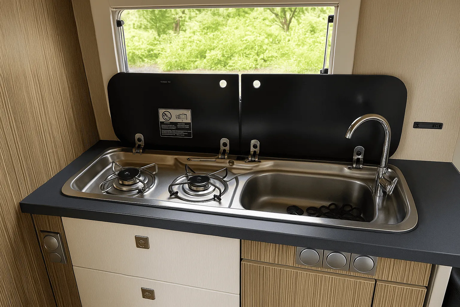 キャブコンタイプのキャンピングカーなどは、もともとコンロやシンクといった簡易的なキッチン設備を備えているものが多いですが、さらに増設パーツを取り入れることで利便性と快適性が格段に向上します。例えば電子レンジや冷蔵庫を追加すれば、長旅でも安心して食材を保存でき、温かい料理を手軽に楽しめるようになります。しっかりとしたキッチン設備があれば、旅先でも自炊が可能となり、外食に頼る頻度を減らせるためコスト削減にもつながります。さらに、現地で購入した新鮮な野菜や魚介類などを調理すれば、その地域ならではの食文化を体験でき、旅の思い出がより豊かになります。家族や仲間と車内で料理を囲めば、まるで自宅のような安心感が得られ、キャンピングカーでの生活に一層の楽しみが生まれるでしょう。